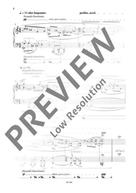 Widmann's Intermezzi are influenced by the famous cycles of Johannes Brahms (Op. 116 - Op. 119) which are cited quite frequently. In the preface of the edition, Widmann hints at its 'unsettling reduction and succinct brevity': 'Latently menacing structures of melancholy beauty emerge from almost nothing here. I wish to listen to this tone of the later Brahms in my own Intermezzi which are naturally (and with regard to their age) totally different. And thus pay tribute to Brahms, the love of my youth, who was then overshadowed by Schumann for a long time but is now flaring up anew. The secret after the sound, even the anticipating pre-sound, the space of the in-between is what, to me, constitutes the essence of music. Therefore: Intermezzi.'