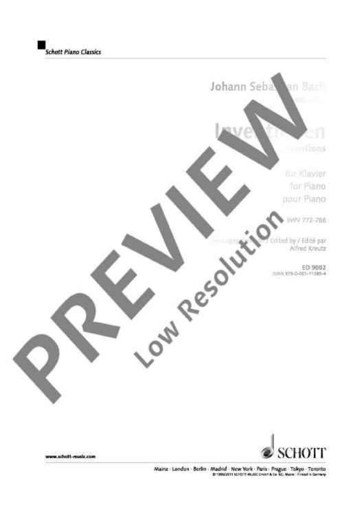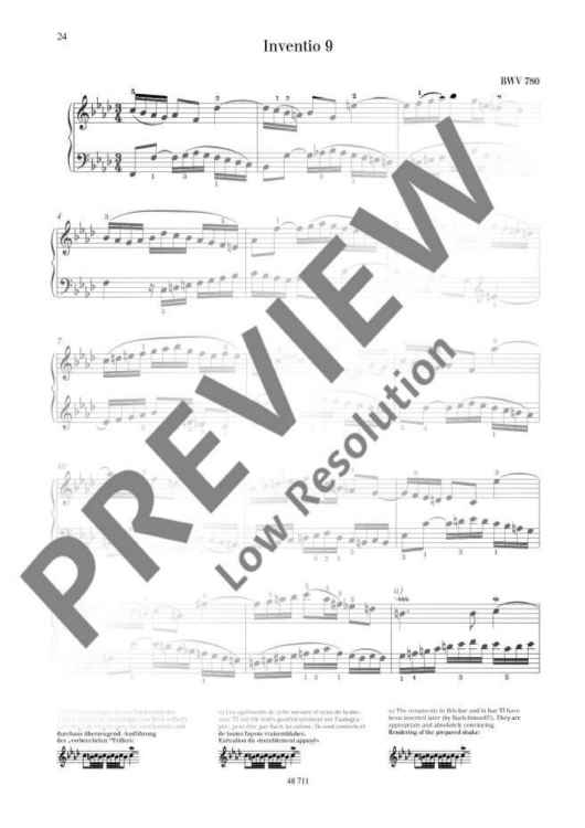 In the autograph of his 'Inventions', J.S. Bach set out the aim of these pieces, formulating a dual purpose: the keyboard player should, on the one hand, practise polyphonic playing with two obligatory parts and develop a 'cantabile' style; at the same time he should also be given an introduction to the study of composition, and learn how a piece can be developed from an invented theme (Inventio) by means of imitative techniques. Our new edition in the well-known 'Piano Classics' series is intended for teaching purposes and provides a reliable text, an introduction to the work as well as a table for the realization of J. S. Bach's ornaments and trills.