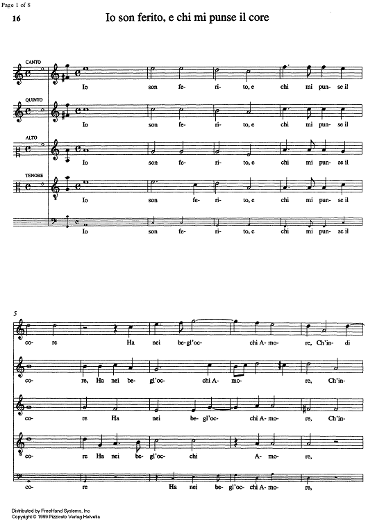 "Io son ferito, e chi mi punse il core" Sheet Music by Alessandro Orologio