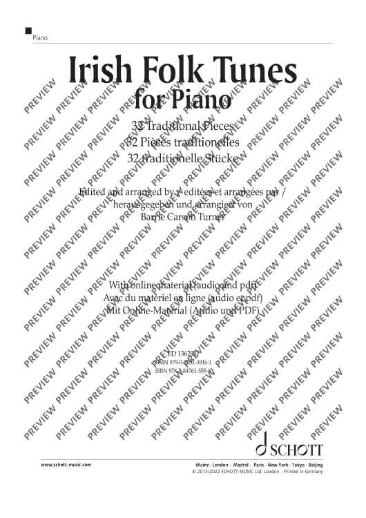 From the best-selling World Music series 32 Traditional tunes arranged for piano For intermediate to advanced players Irish Folk Tunes presents a collection of beautiful pieces for solo piano drawn from the rich tradition of Irish folk music. Experienced author and arranger Barrie Carson-Turner provides notes on all of the pieces, explaining their background and history. The volume is accompanied by a MP3 download with a recording of all tunes. Suitable for players of grades 3-8 (UK).