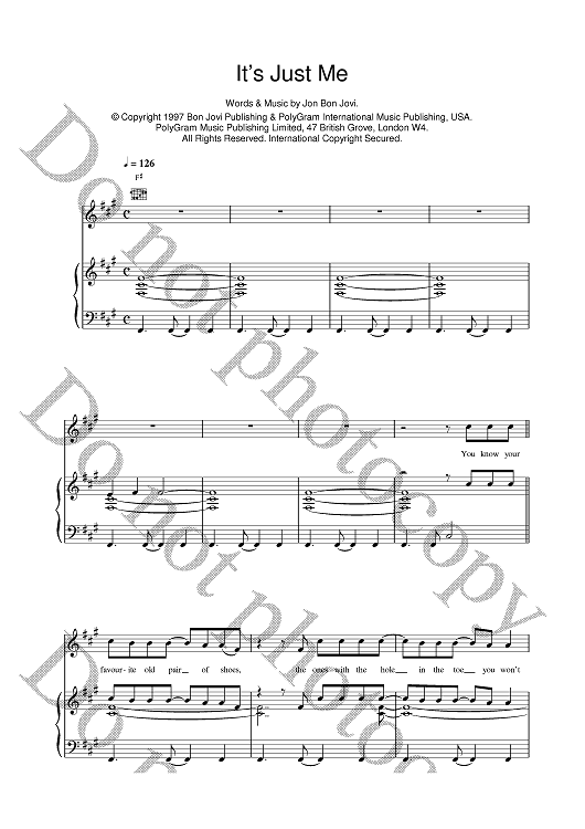 Digital Sheet Music for It's Just Me by Jon Bon Jovi scored for Piano/Vocal/Chords; id:376478