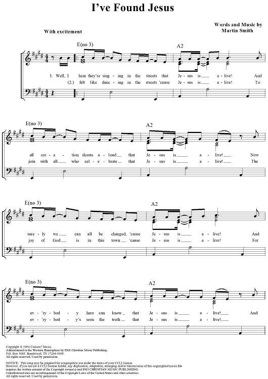 Digital Sheet Music for I've Found Jesus (Passion Version) by Martin Smith, Delirious? scored for Piano/Vocal/Chords; id:113994