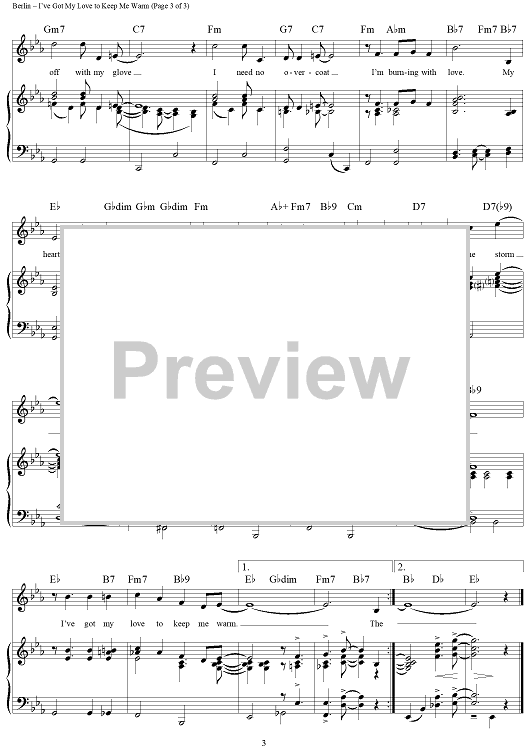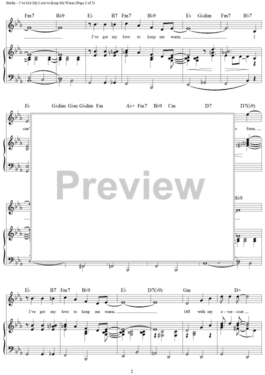 Digital Sheet Music for I've Got My Love to Keep Me Warm by Irving Berlin, Sidney Mitchell scored for Piano/Vocal/Chords; id:305415