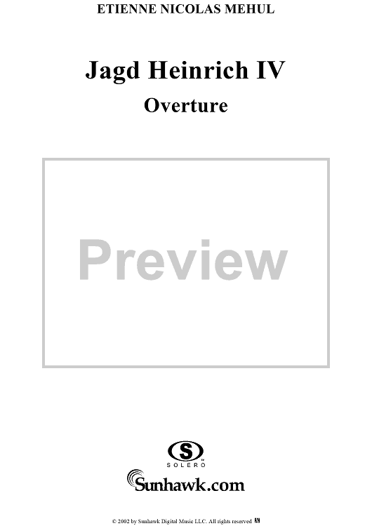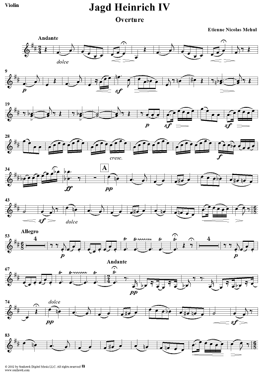 "Jagd Heinrich IV, Overture - Violin" Sheet Music by H. E. Mehul
