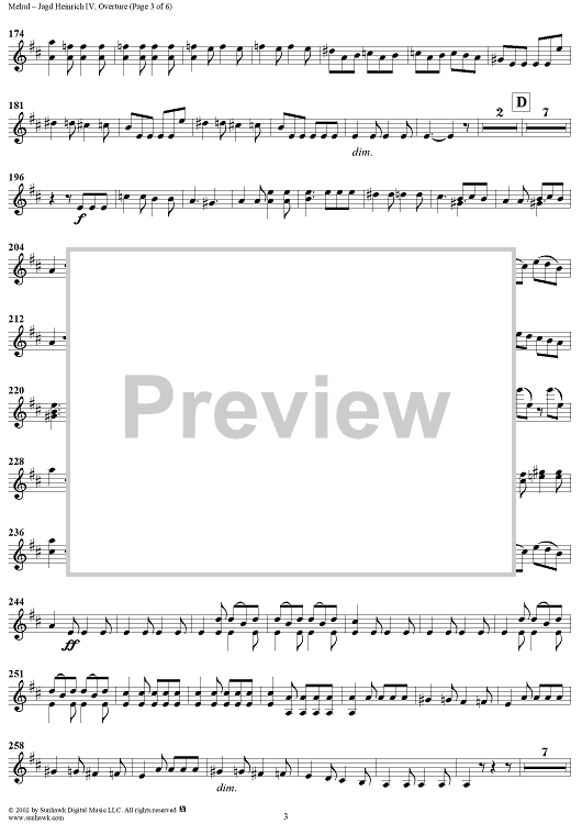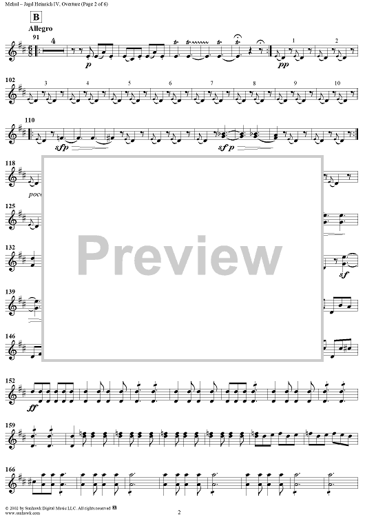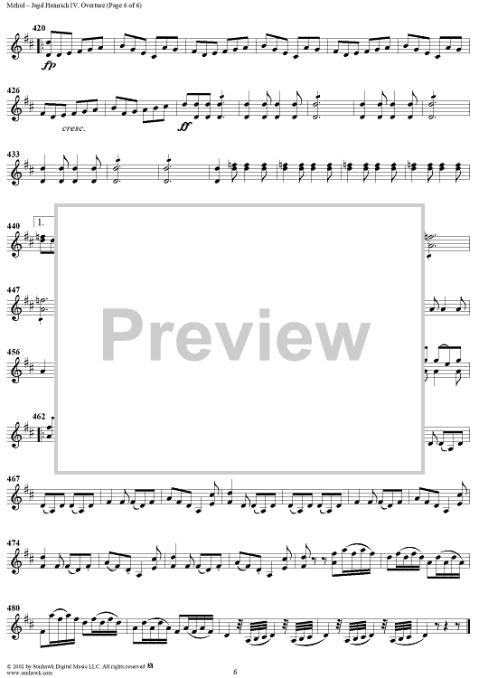 Digital Sheet Music for Jagd Heinrich IV, Overture - Violin by H. E. Mehul scored for Violin/Piano; id:267321