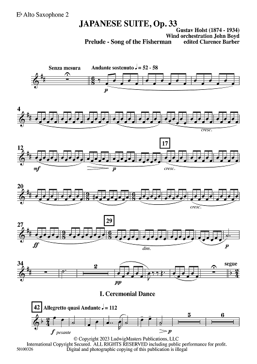 Digital Sheet Music for Japanese Suite, Op. 33 - Eb Alto Saxophone 2 by John Boyd, Gustav Holst scored for Symphonic Band; id:509953