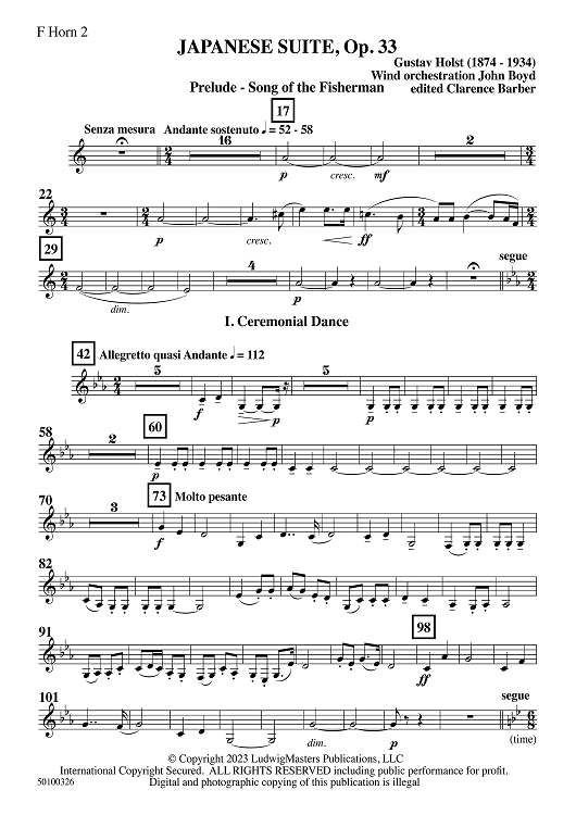 Digital Sheet Music for Japanese Suite, Op. 33 - F Horn 2 by John Boyd, Gustav Holst scored for Symphonic Band; id:509960