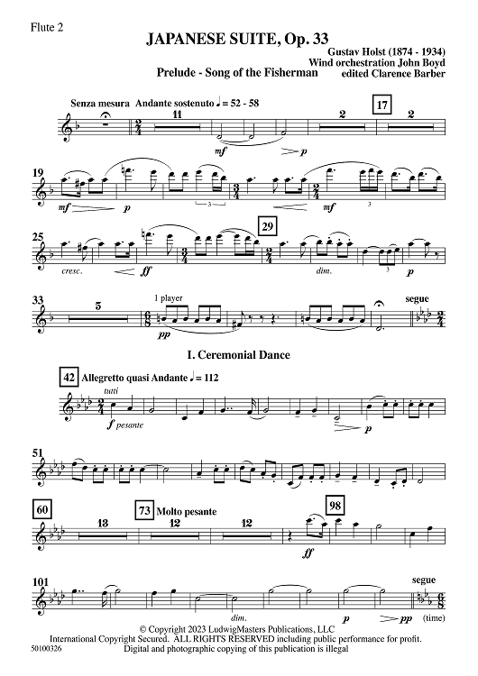 Digital Sheet Music for Japanese Suite, Op. 33 - Flute 2 by John Boyd, Gustav Holst scored for Symphonic Band; id:509937