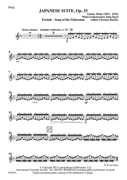Digital Sheet Music for Japanese Suite, Op. 33 - Harp by John Boyd, Gustav Holst scored for Symphonic Band; id:509970