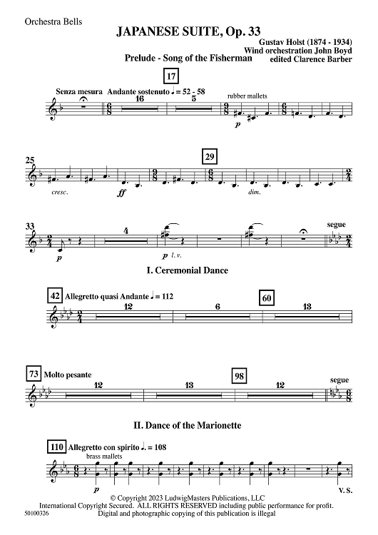 Digital Sheet Music for Japanese Suite, Op. 33 - Orchestra Bells by John Boyd, Gustav Holst scored for Symphonic Band; id:509971