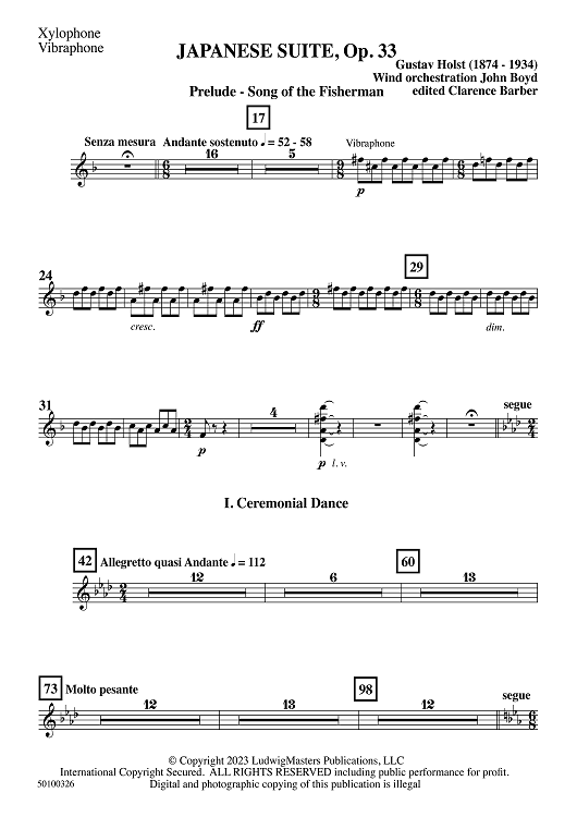Digital Sheet Music for Japanese Suite, Op. 33 - Xylophone & Vibraphone by John Boyd, Gustav Holst scored for Symphonic Band; id:509972