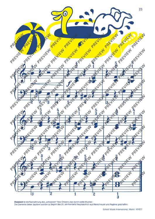 Piccoli pezzi in divertente arrangiamento jazz per i più piccoli. Con big note e simpatici colorati disegni per allegre canzoncine come: Clown Rag - Big Drum Boogie e tante altre.
