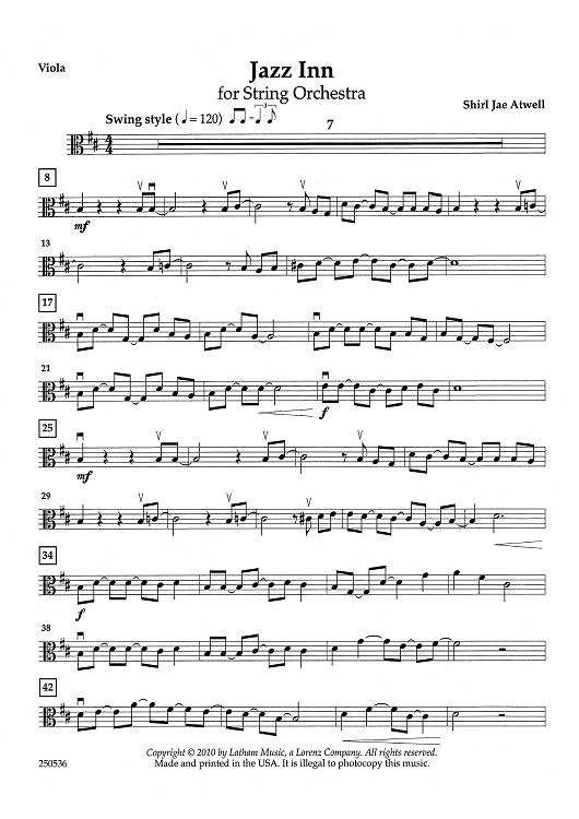 "Jazz Inn - Viola" Sheet Music by Shirl Jae Atwell