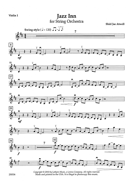 "Jazz Inn - Violin 1" Sheet Music by Shirl Jae Atwell