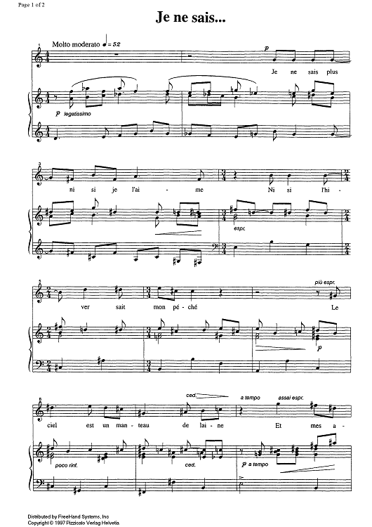 Digital Sheet Music for Je ne sais by Marco Sofianopulo scored for Soprano/Piano; id:334345