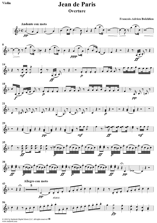 Digital Sheet Music for Jean de Paris - Violin by François-Adrien Boieldieu scored for Violin/Piano; id:269884