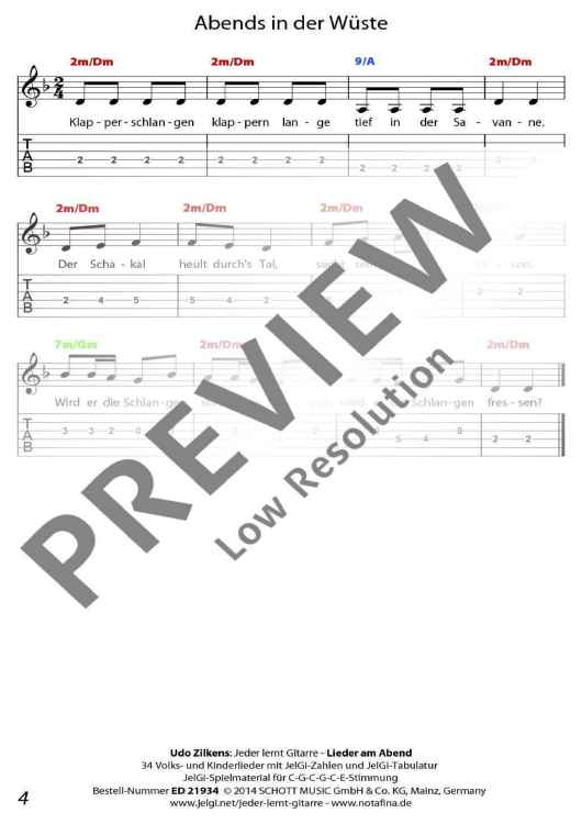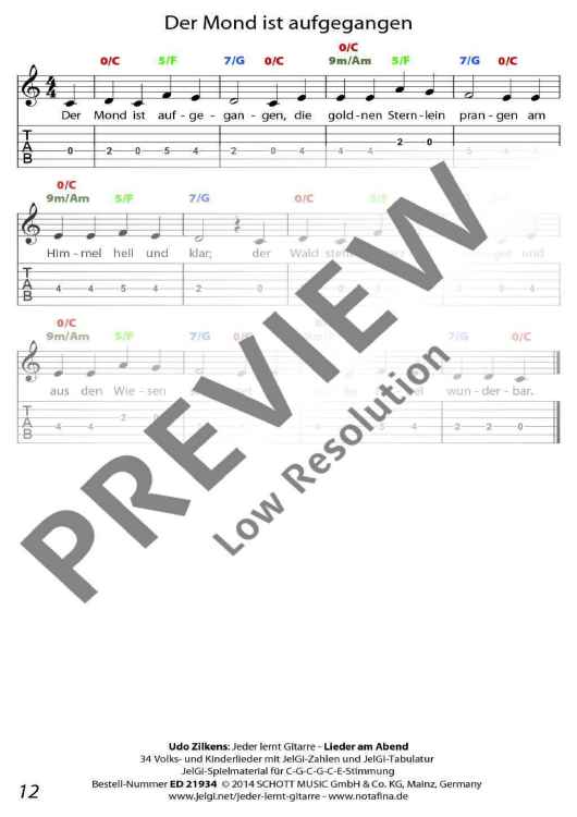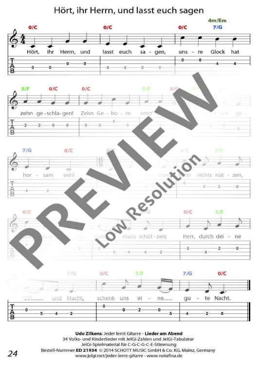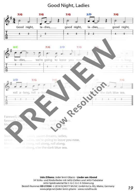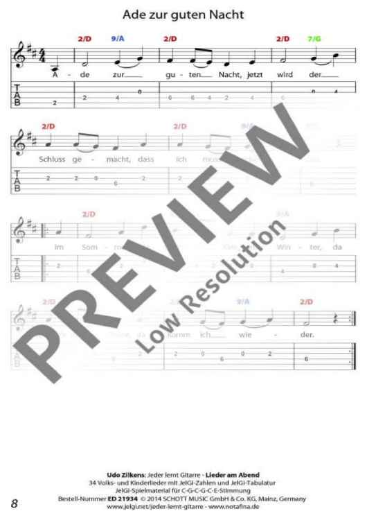 Die im In- und Ausland als Marke registrierte Methode "JelGi - Jeder lernt Gitarre" bietet alle Noten wahlweise für traditionelle Stimmung E-A-D-G-H-E oder für vereinfachte JelGi-Stimmung C-G-C-G-C-E an. Die farbigen JelGi-Zahlen entsprechen den Bünden bei der vereinfachten JelGi-Stimmung, die farbigen Akkordbuchstaben geben die traditionellen Gitarrengriffe an. Weitere Informationen zur JelGi-Methode sind unter www.jelgi.com zu finden.