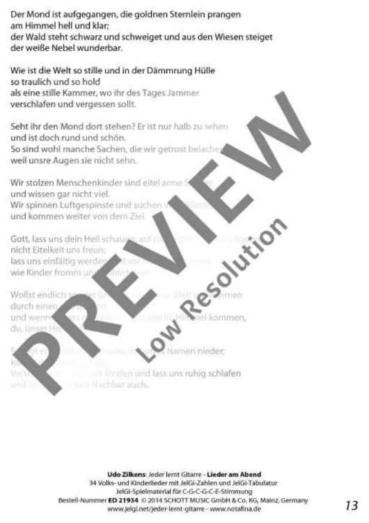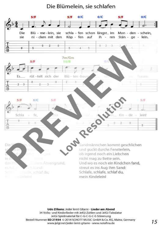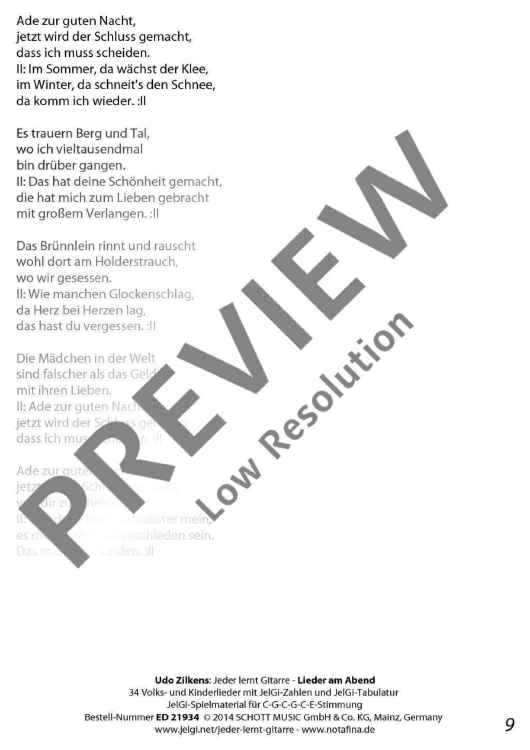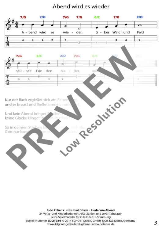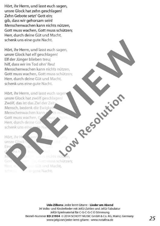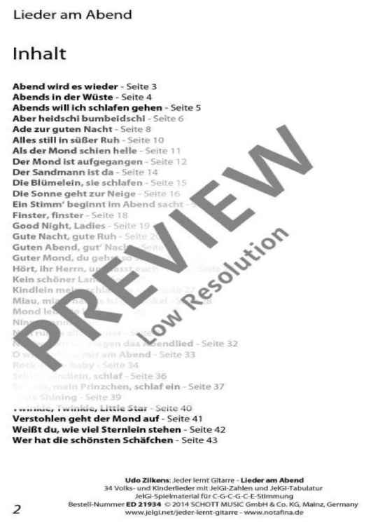 "Jeder lernt Gitarre - Lieder am Abend" Sheet Music by