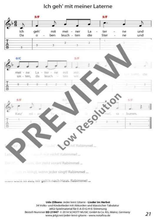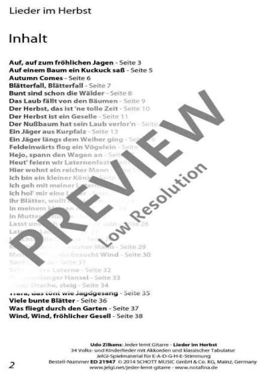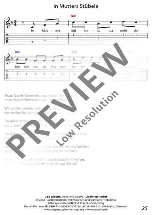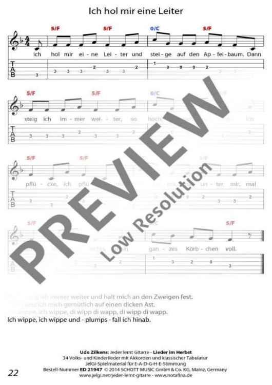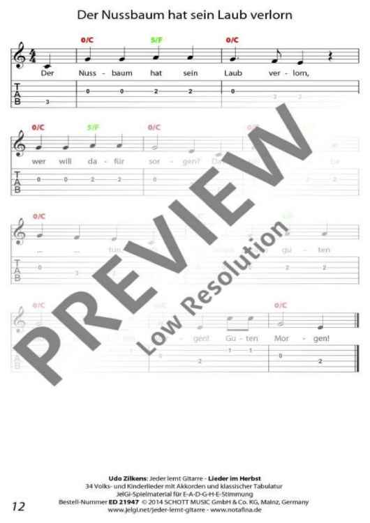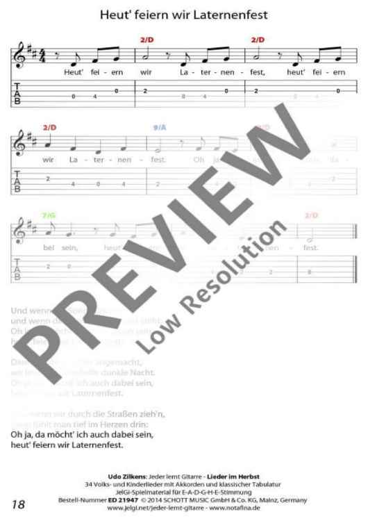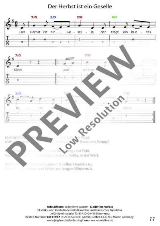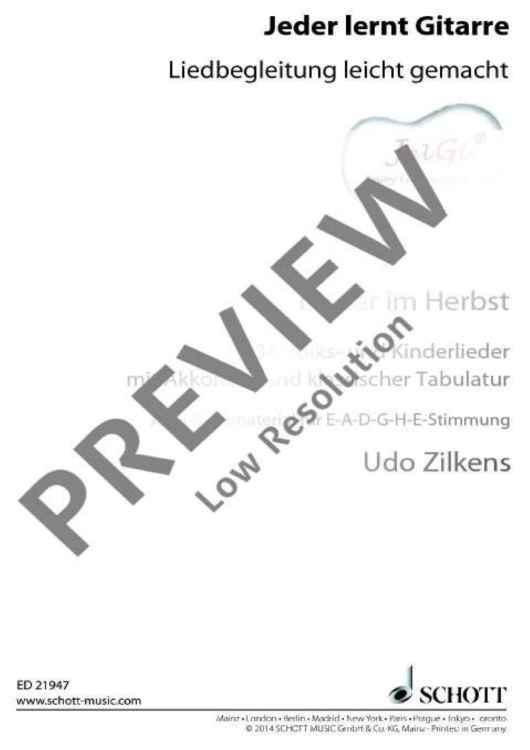 "Jeder lernt Gitarre - Lieder im Herbst" Sheet Music by