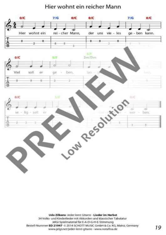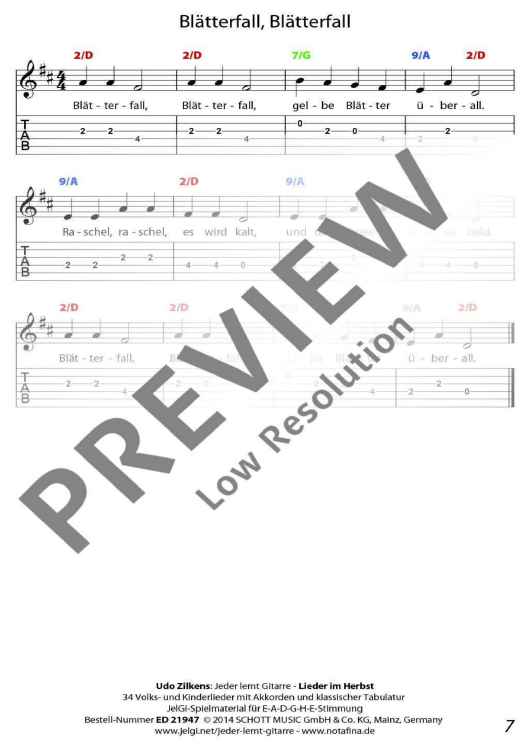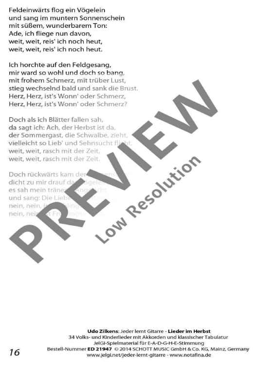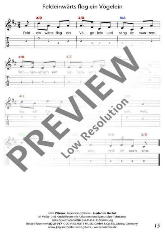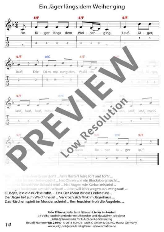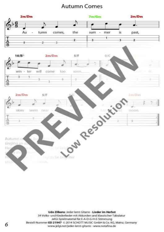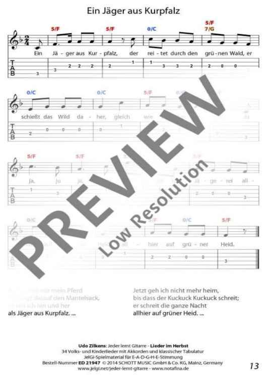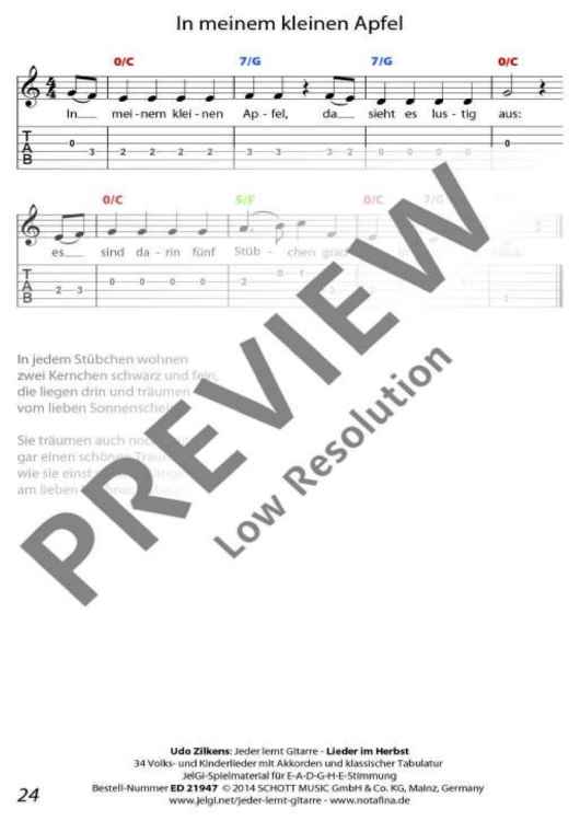 "Jeder lernt Gitarre - Lieder im Herbst" Sheet Music by