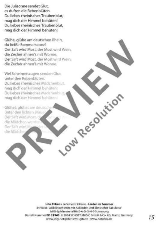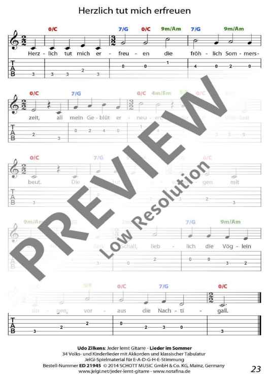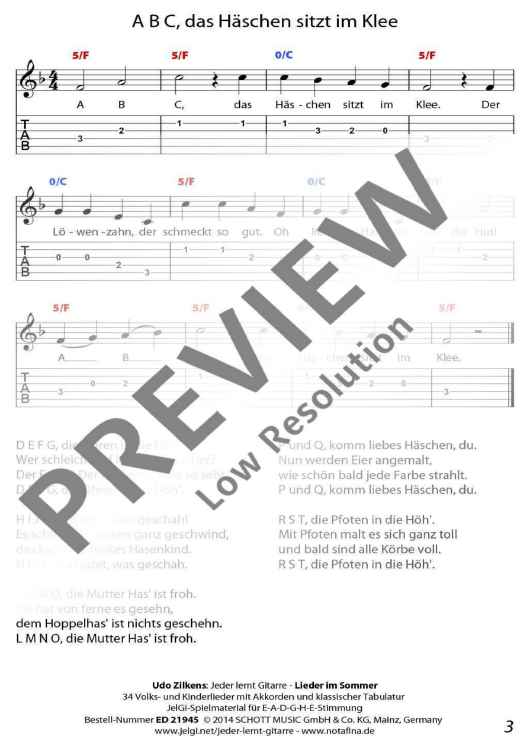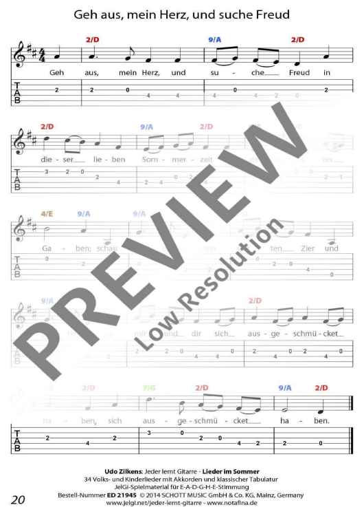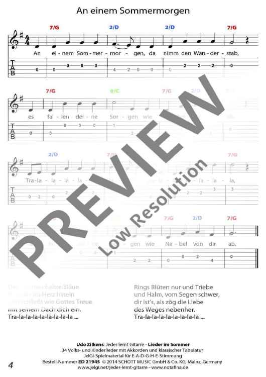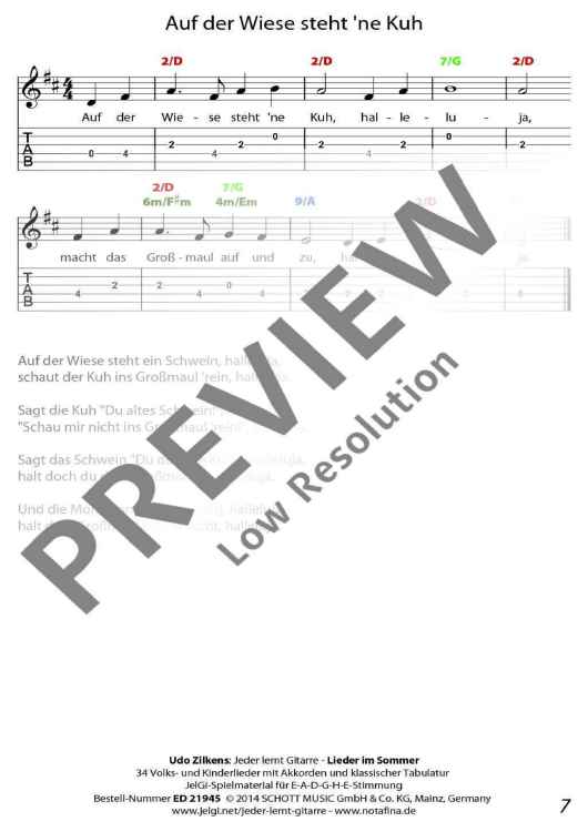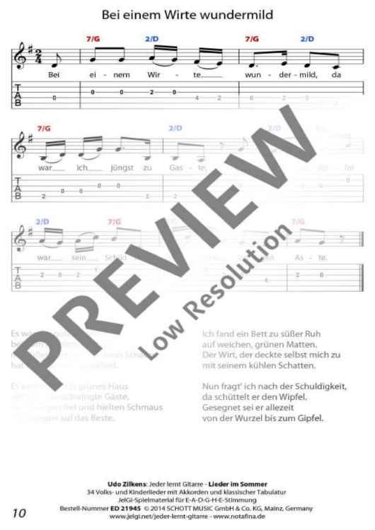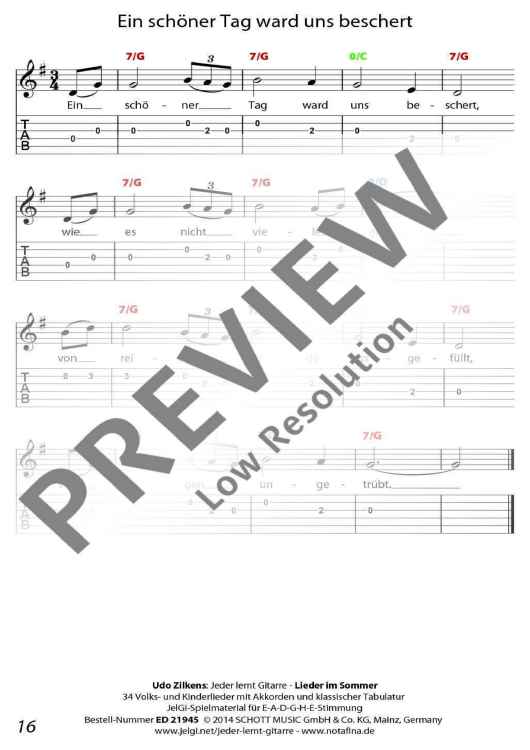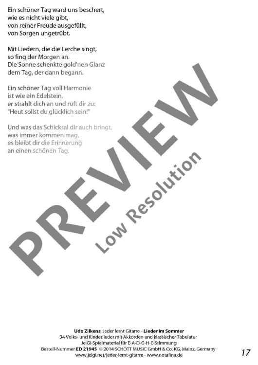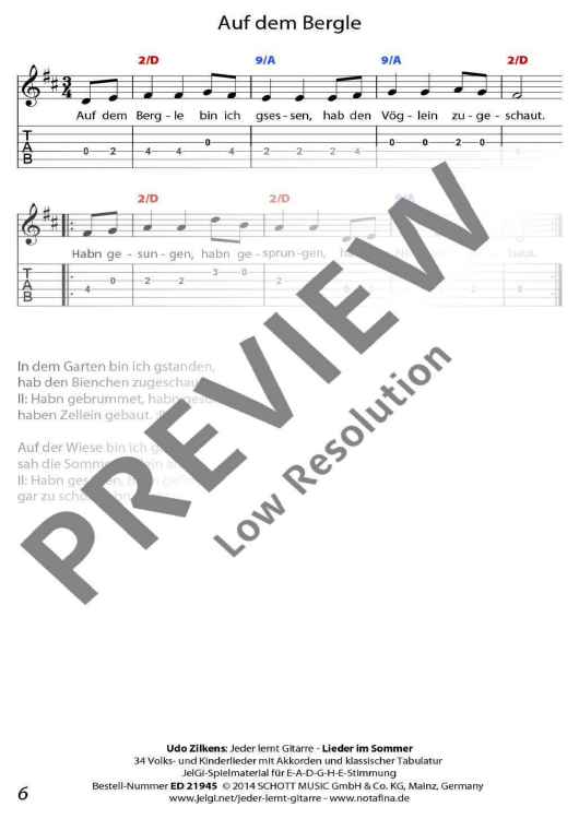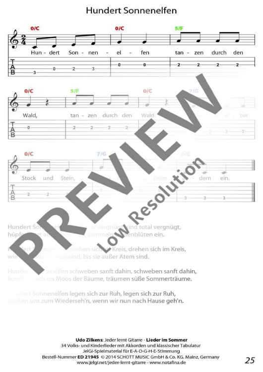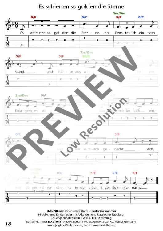"Jeder lernt Gitarre - Lieder im Sommer" Sheet Music by