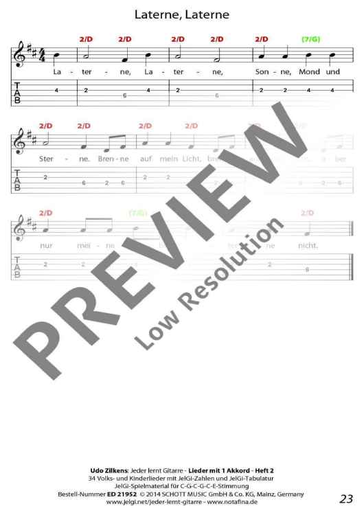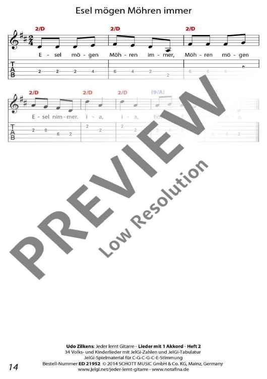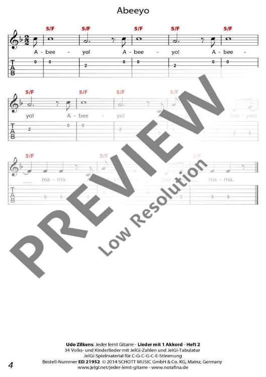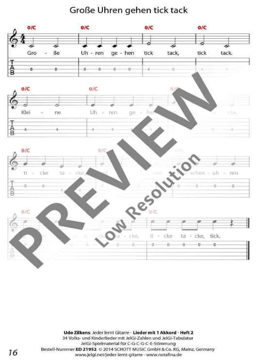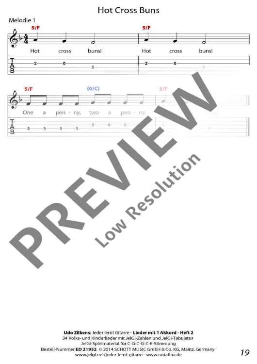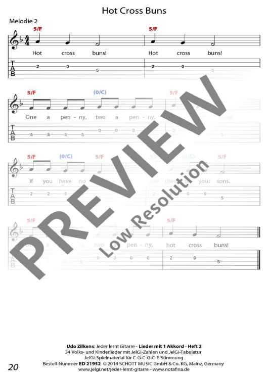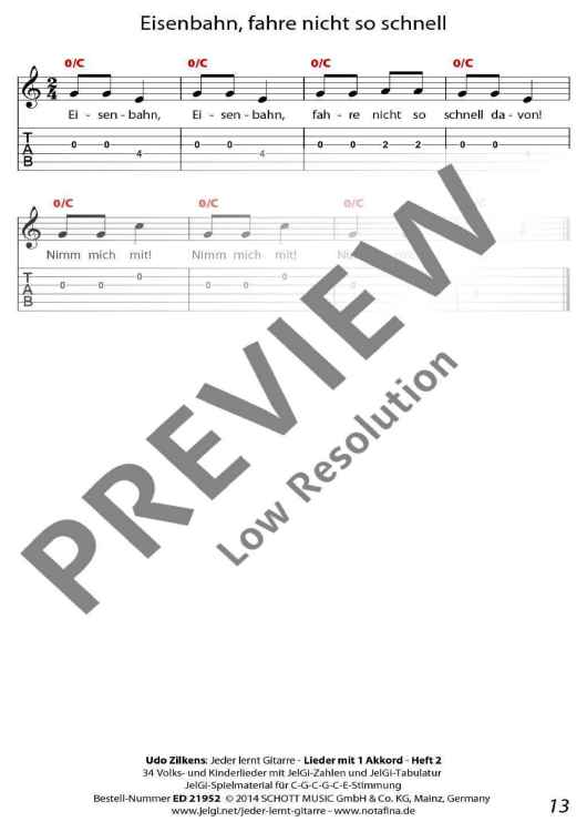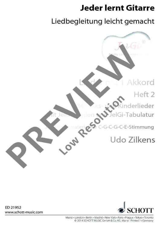Die im In- und Ausland als Marke registrierte Methode "JelGi - Jeder lernt Gitarre" bietet alle Noten wahlweise für traditionelle Stimmung E-A-D-G-H-E oder für vereinfachte JelGi-Stimmung C-G-C-G-C-E an. Die farbigen JelGi-Zahlen entsprechen den Bünden bei der vereinfachten JelGi-Stimmung, die farbigen Akkordbuchstaben geben die traditionellen Gitarrengriffe an. Weitere Informationen zur JelGi-Methode sind unter www.jelgi.com zu finden.