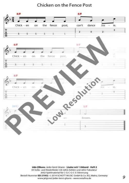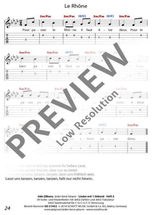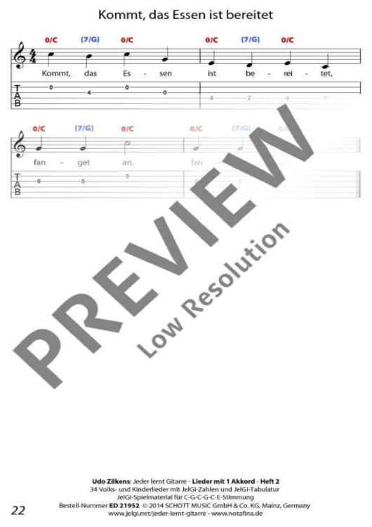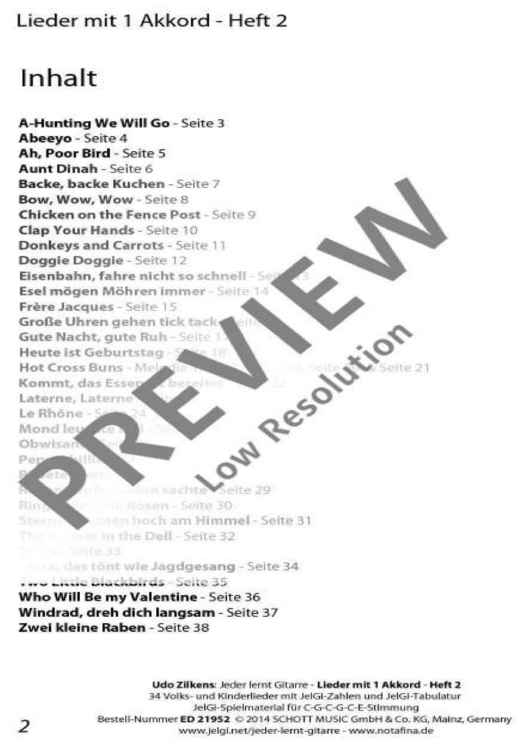 "Jeder lernt Gitarre - Lieder mit 1 Akkord Heft 2" Sheet Music by