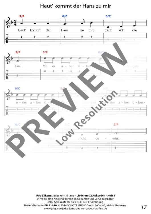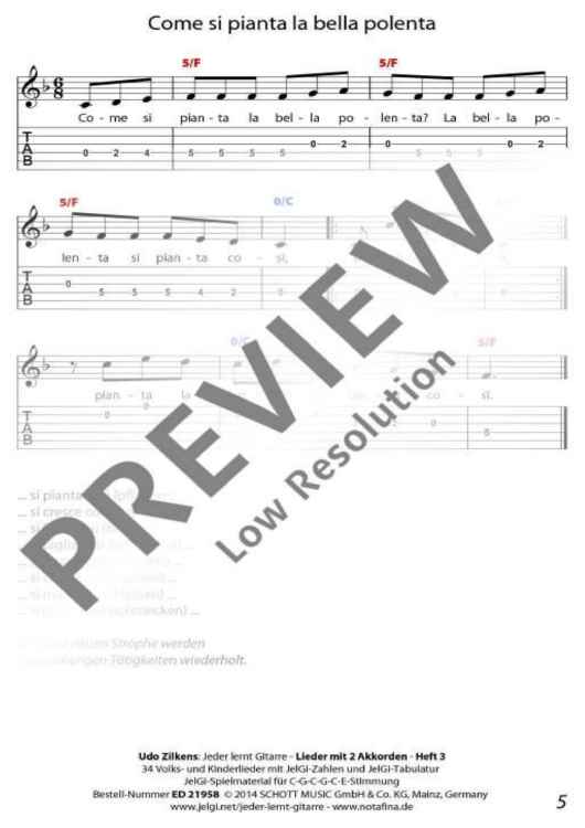 "Jeder lernt Gitarre - Lieder mit 2 Akkorden Heft 3" Sheet Music by