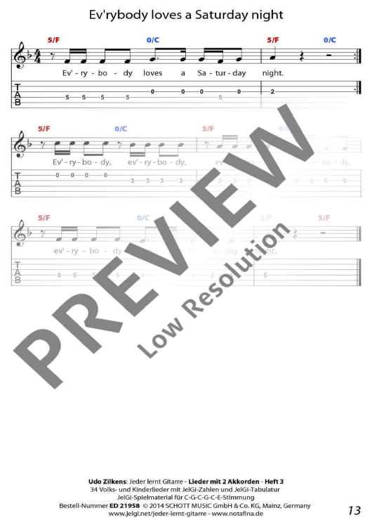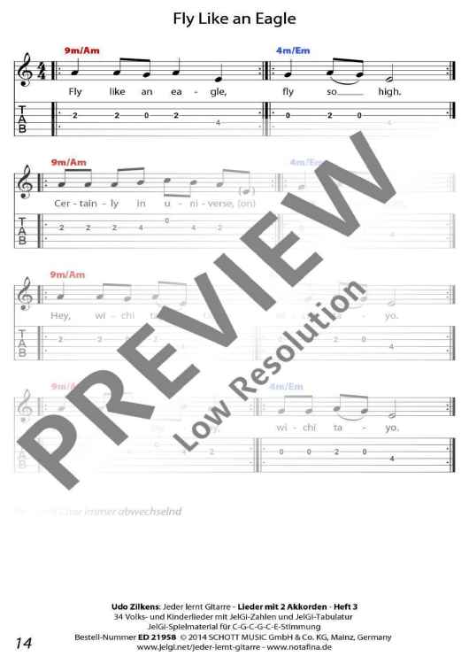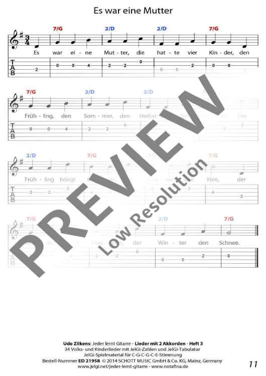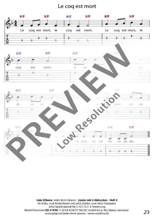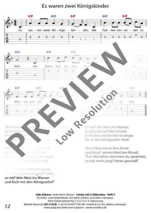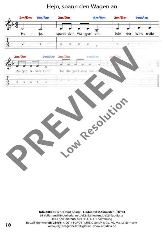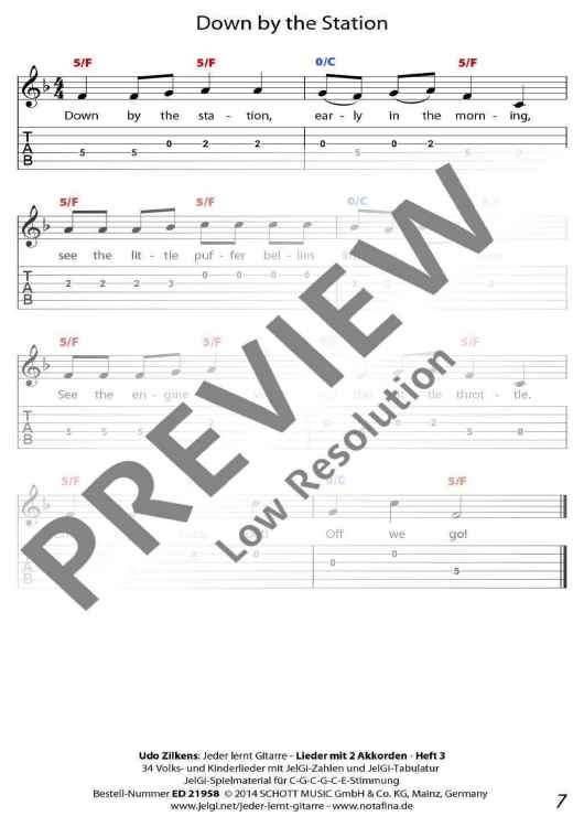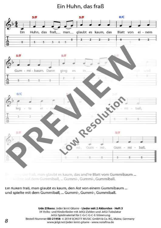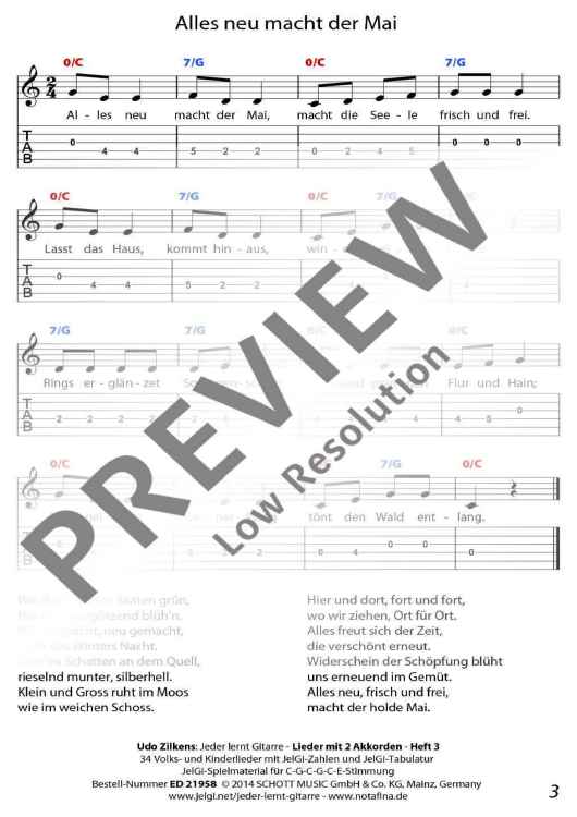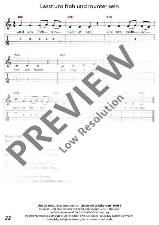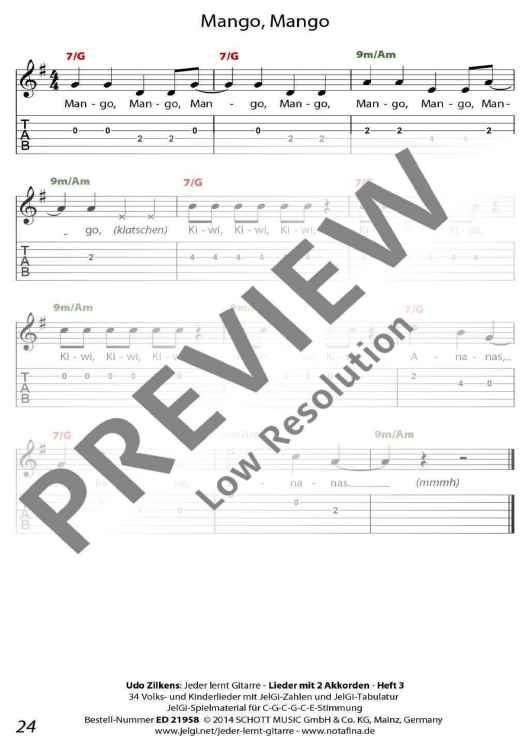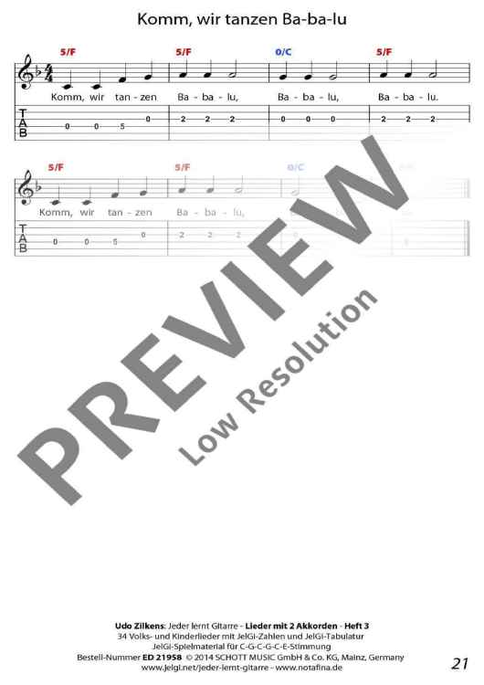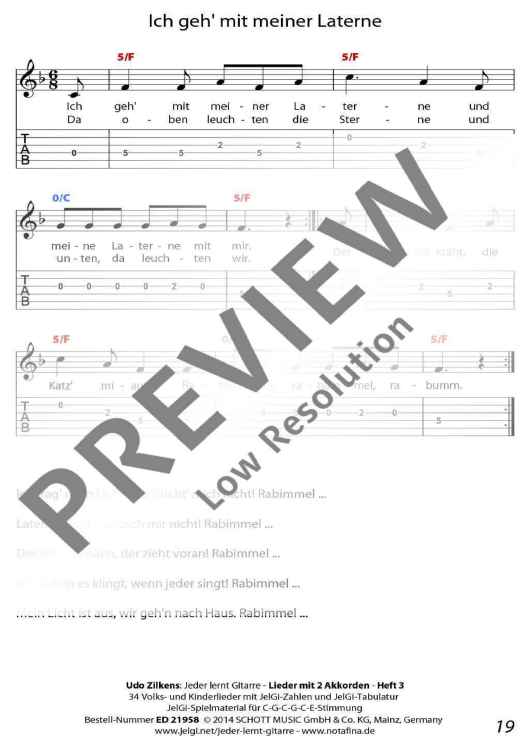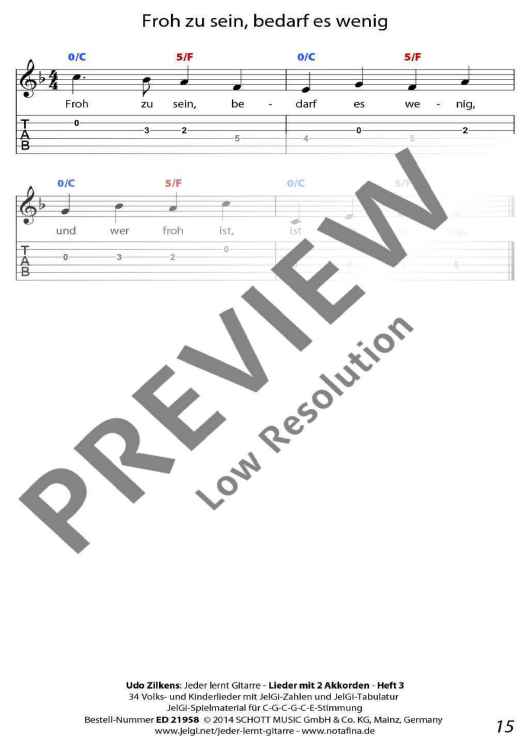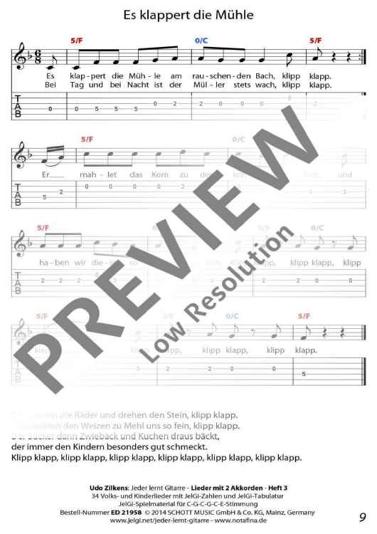 Die im In- und Ausland als Marke registrierte Methode "JelGi - Jeder lernt Gitarre" bietet alle Noten wahlweise für traditionelle Stimmung E-A-D-G-H-E oder für vereinfachte JelGi-Stimmung C-G-C-G-C-E an. Die farbigen JelGi-Zahlen entsprechen den Bünden bei der vereinfachten JelGi-Stimmung, die farbigen Akkordbuchstaben geben die traditionellen Gitarrengriffe an. Weitere Informationen zur JelGi-Methode sind unter www.jelgi.com zu finden.