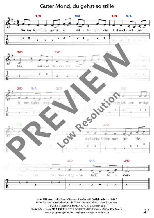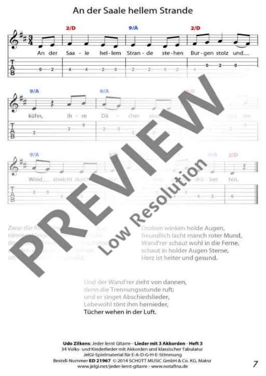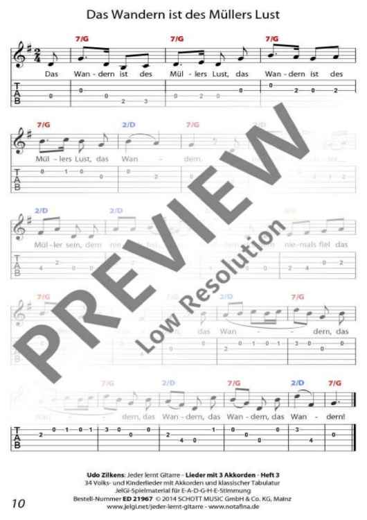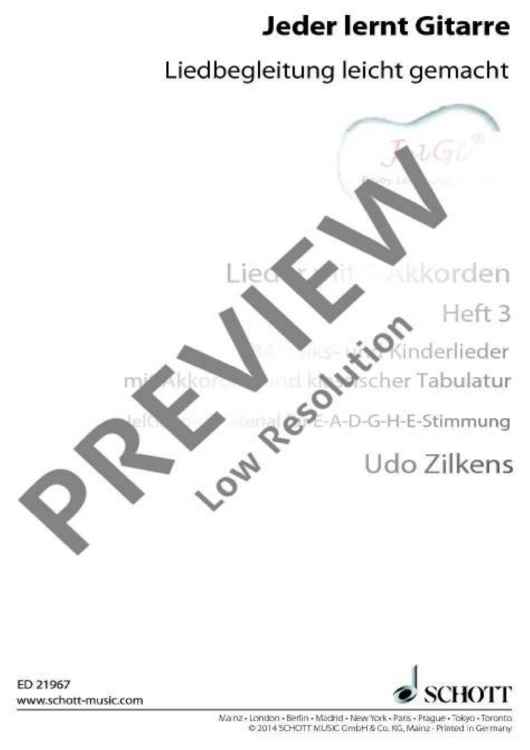 "Jeder lernt Gitarre - Lieder mit 3 Akkorden Heft 3" Sheet Music by