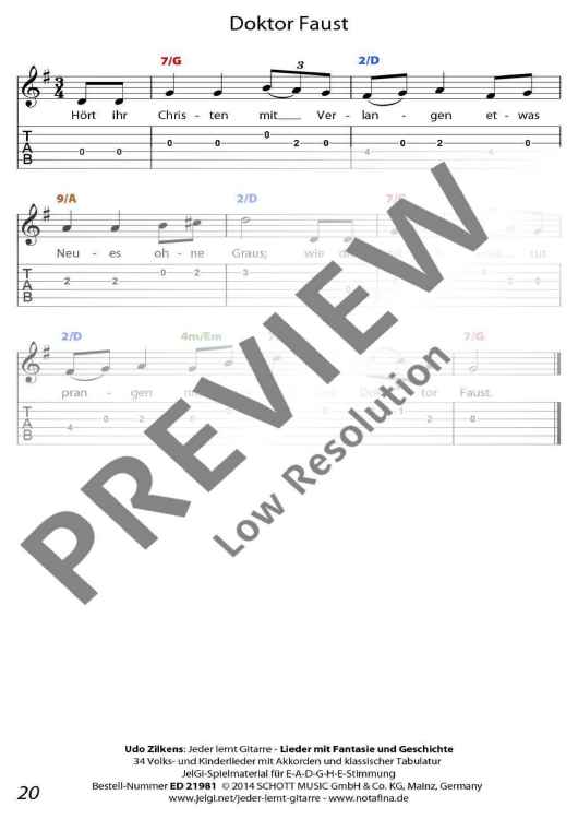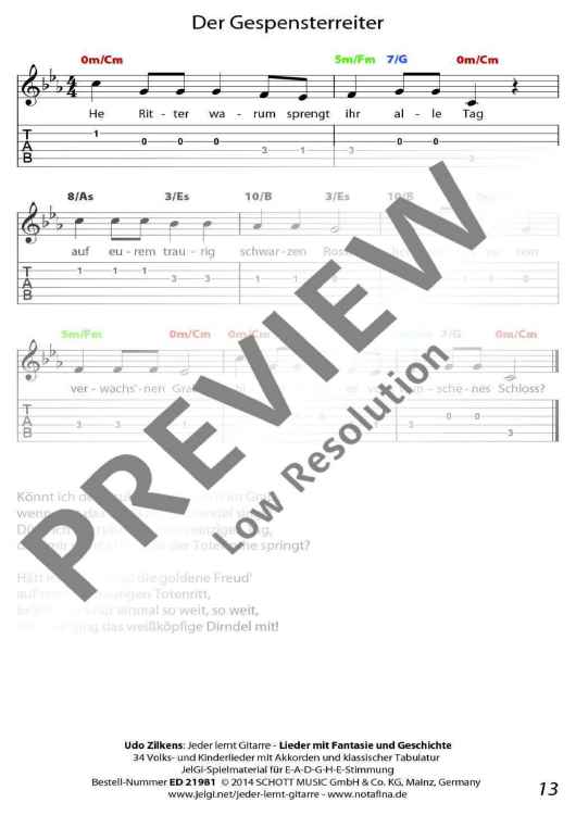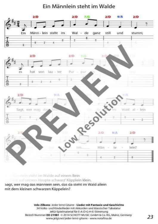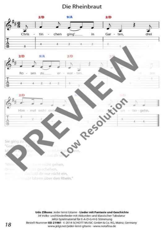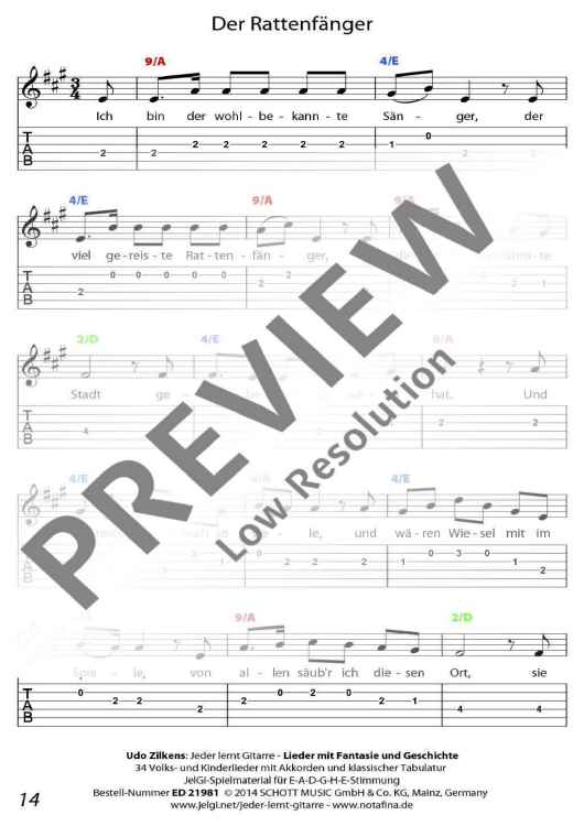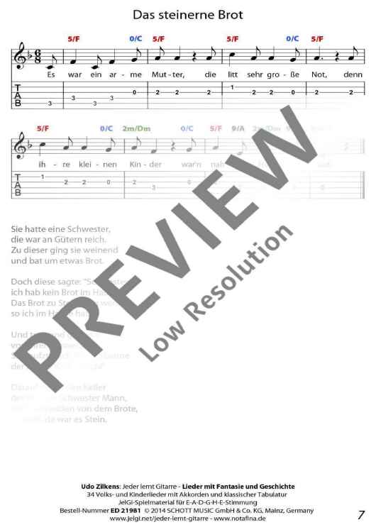 "Jeder lernt Gitarre - Lieder mit Fantasie" Sheet Music by