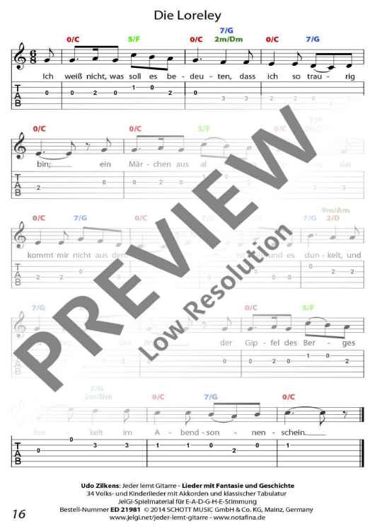 Die im In- und Ausland als Marke registrierte Methode "JelGi - Jeder lernt Gitarre" bietet alle Noten wahlweise für traditionelle Stimmung E-A-D-G-H-E oder für vereinfachte JelGi-Stimmung C-G-C-G-C-E an. Die farbigen JelGi-Zahlen entsprechen den Bünden bei der vereinfachten JelGi-Stimmung, die farbigen Akkordbuchstaben geben die traditionellen Gitarrengriffe an. Weitere Informationen zur JelGi-Methode sind unter www.jelgi.com zu finden.