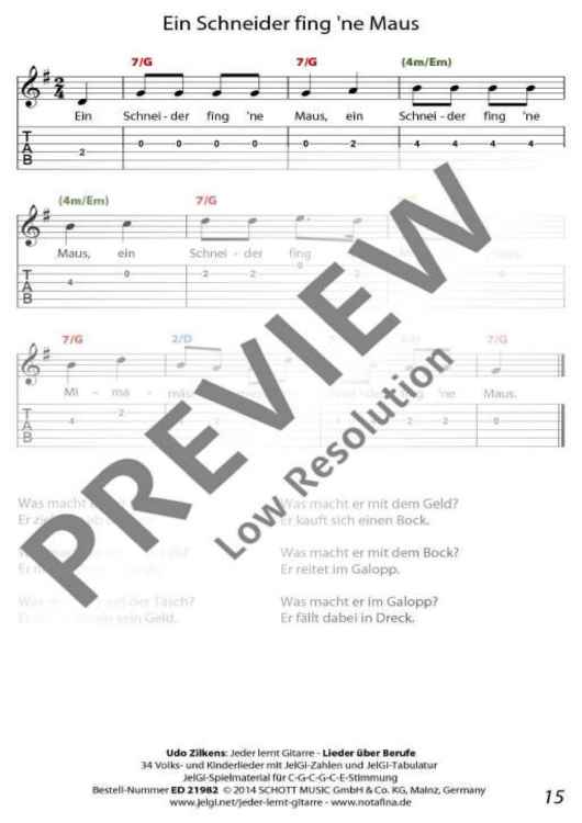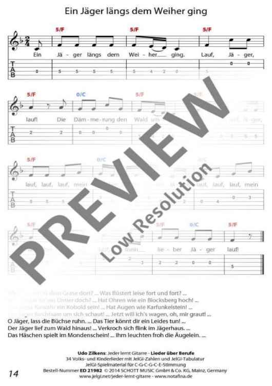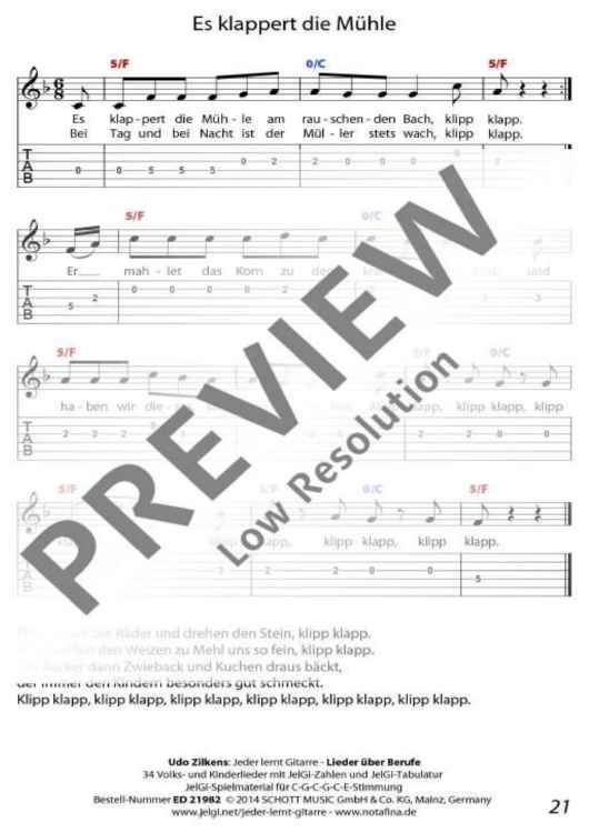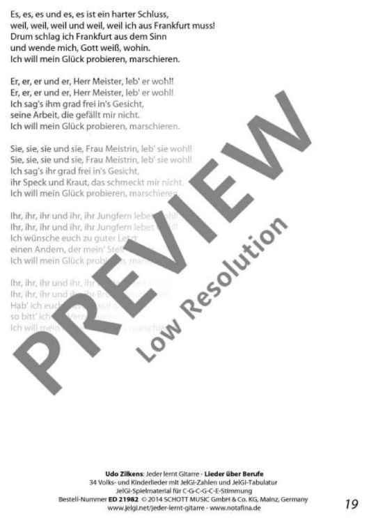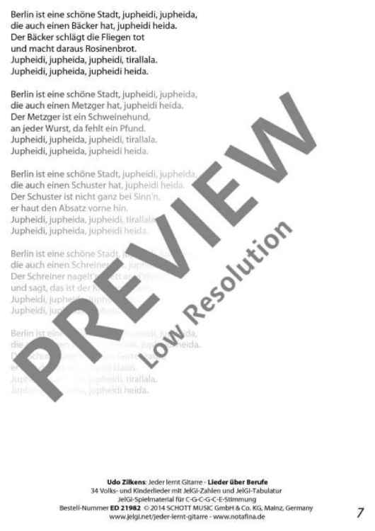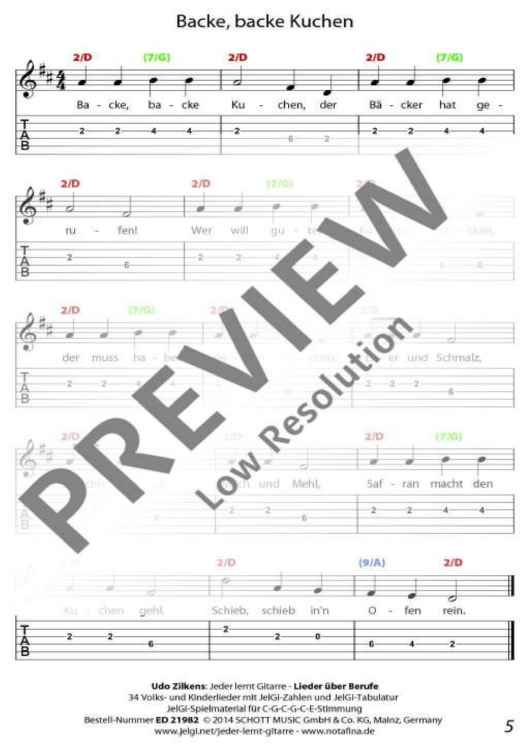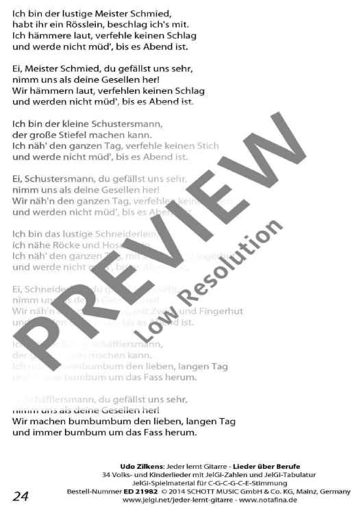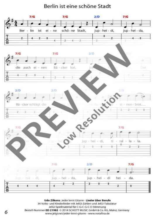 "Jeder lernt Gitarre - Lieder über Berufe" Sheet Music by