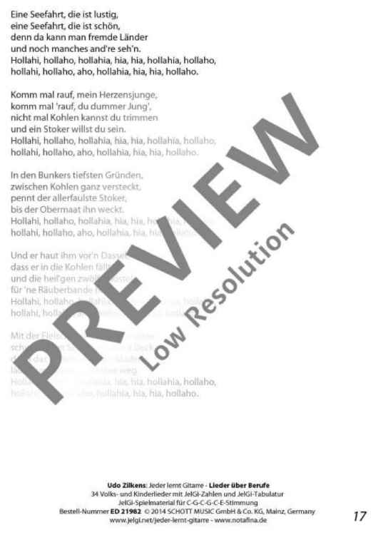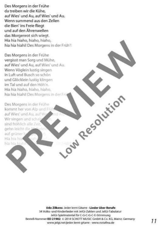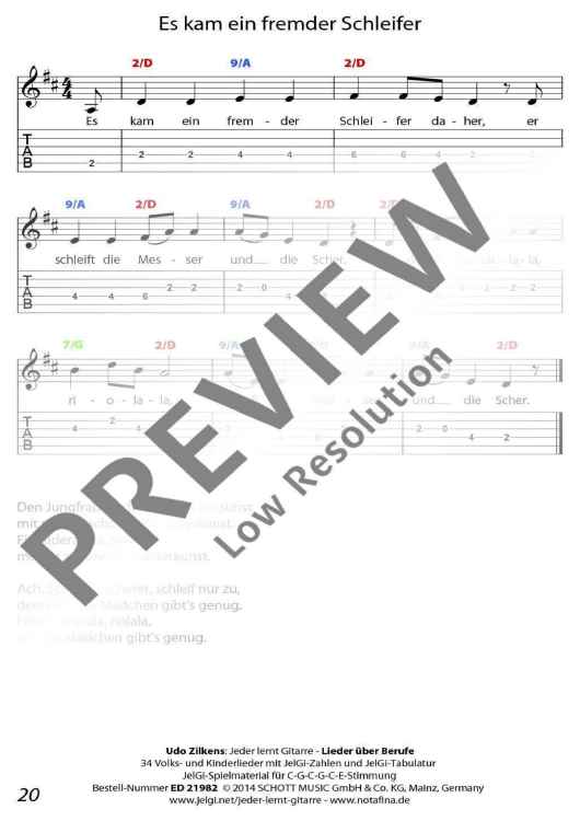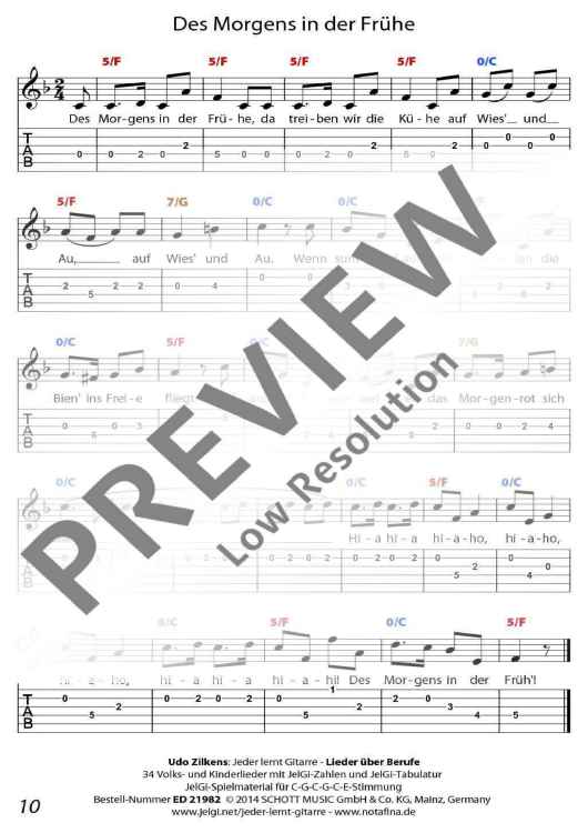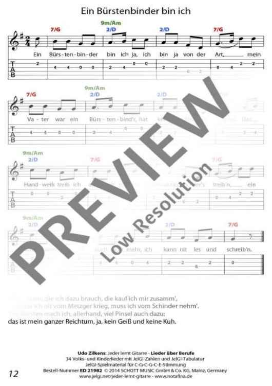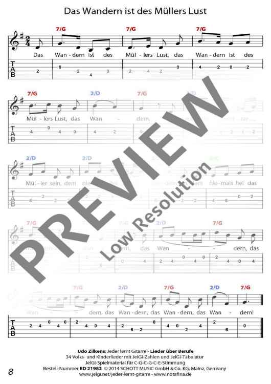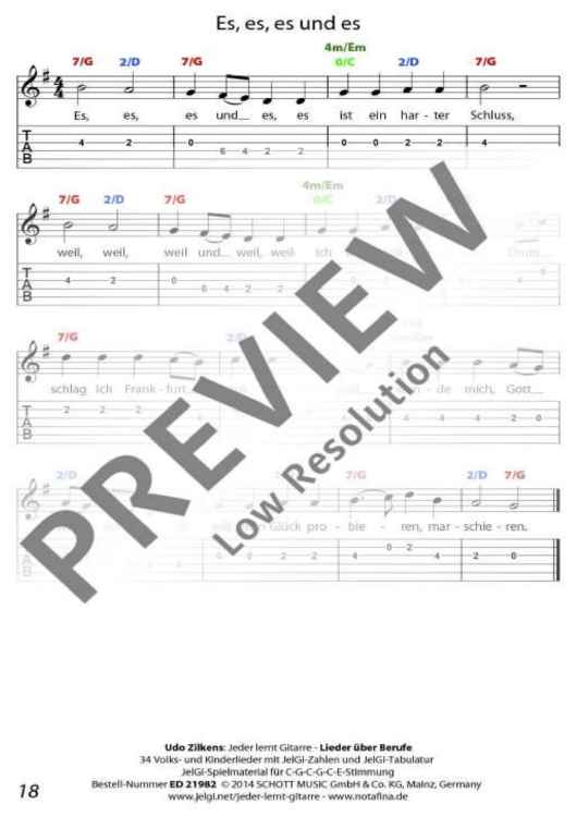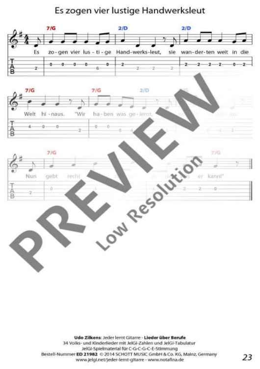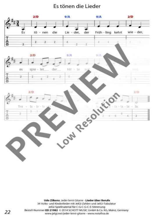 "Jeder lernt Gitarre - Lieder über Berufe" Sheet Music by