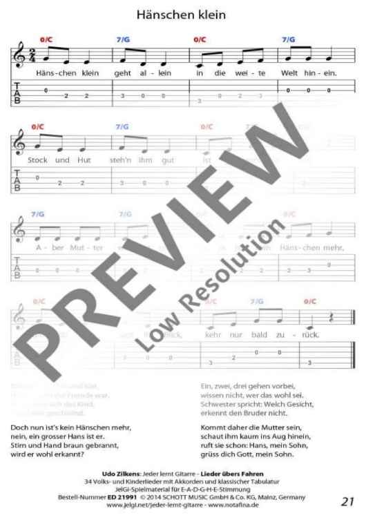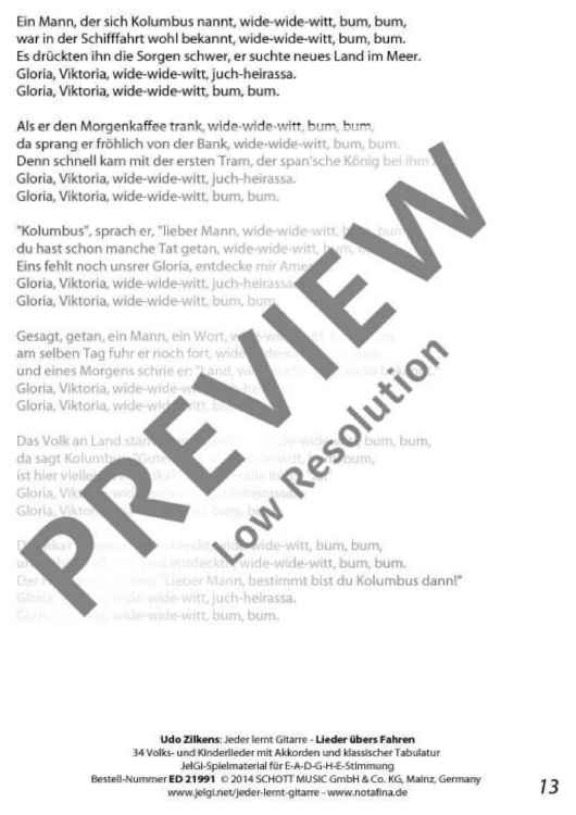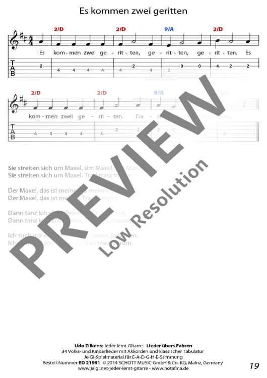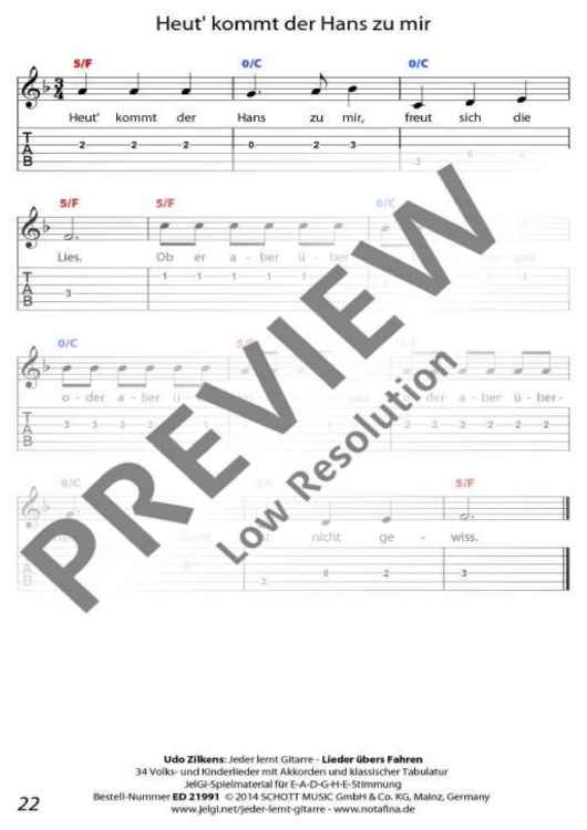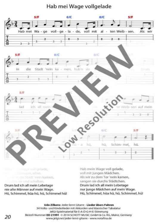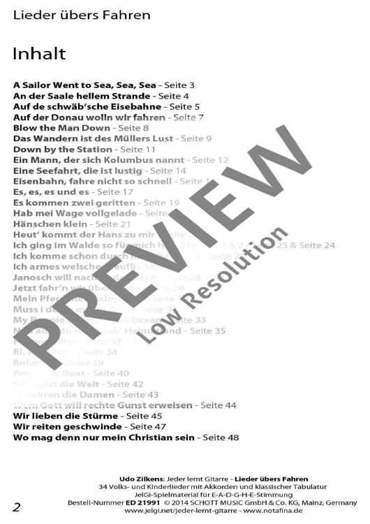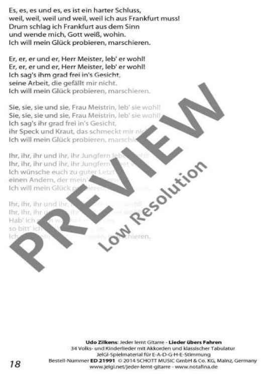 "Jeder lernt Gitarre - Lieder übers Fahren" Sheet Music by