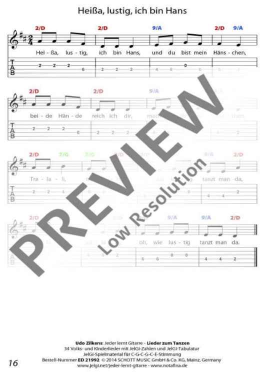 "Jeder lernt Gitarre - Lieder zum Tanzen" Sheet Music by