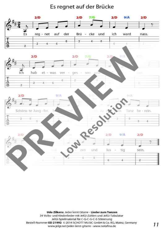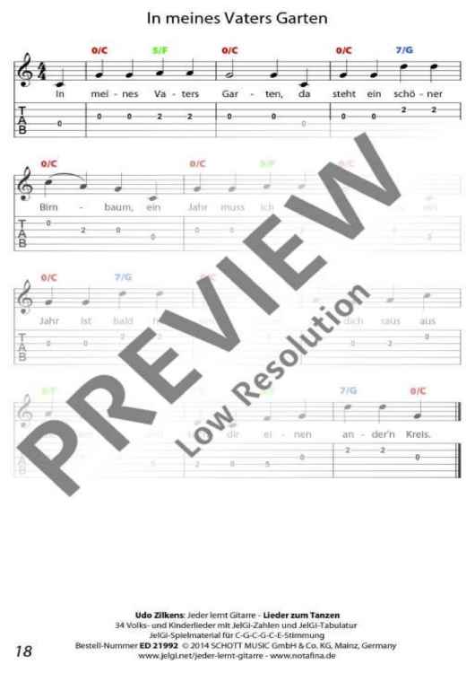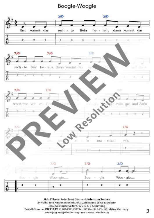 Die im In- und Ausland als Marke registrierte Methode "JelGi - Jeder lernt Gitarre" bietet alle Noten wahlweise für traditionelle Stimmung E-A-D-G-H-E oder für vereinfachte JelGi-Stimmung C-G-C-G-C-E an. Die farbigen JelGi-Zahlen entsprechen den Bünden bei der vereinfachten JelGi-Stimmung, die farbigen Akkordbuchstaben geben die traditionellen Gitarrengriffe an. Weitere Informationen zur JelGi-Methode sind unter www.jelgi.com zu finden.