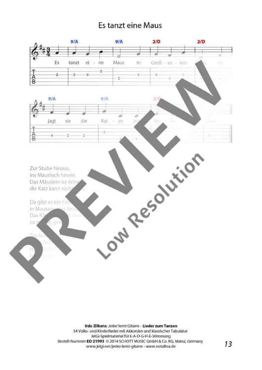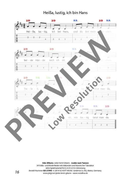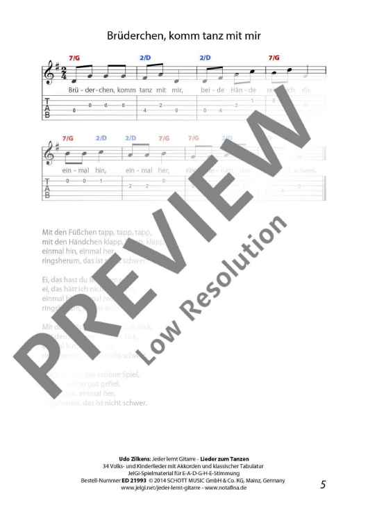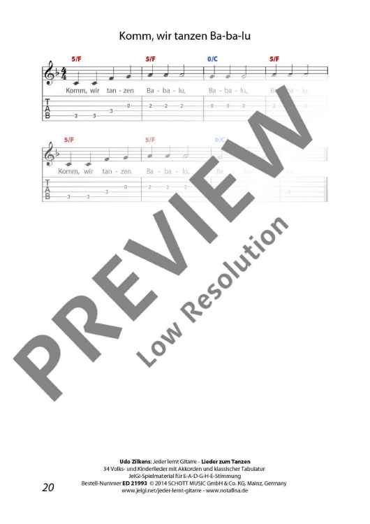 "Jeder lernt Gitarre - Lieder zum Tanzen" Sheet Music by