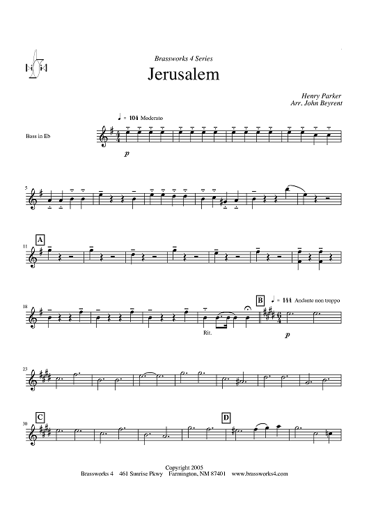 Digital Sheet Music for Jerusalem - Bass in Eb by Henry Parker, John Beyrent scored for Brass Ensemble; id:428400