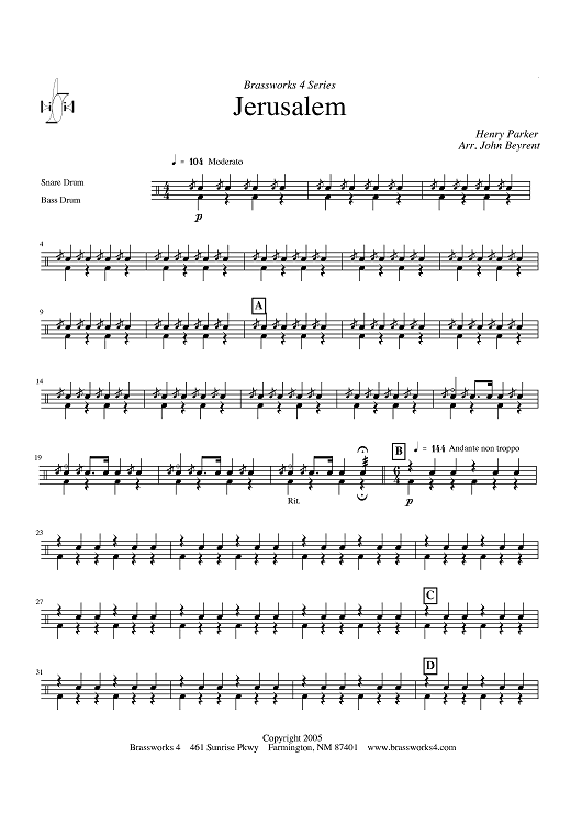"Jerusalem - Snare Drum & Bass Drum" Sheet Music by Henry Parker