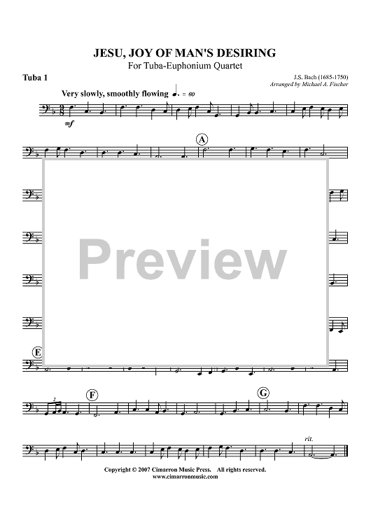 Digital Sheet Music for Jesu, Joy of Man's Desiring - For Tuba-Euphonium Quartet - Tuba 1 by Johann Sebastian Bach, Michael A. Fischer scored for Tuba Quartet; id:413501
