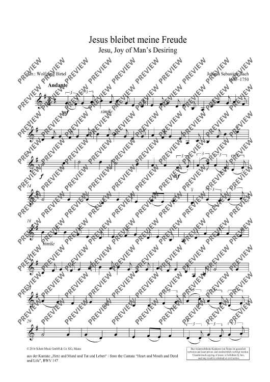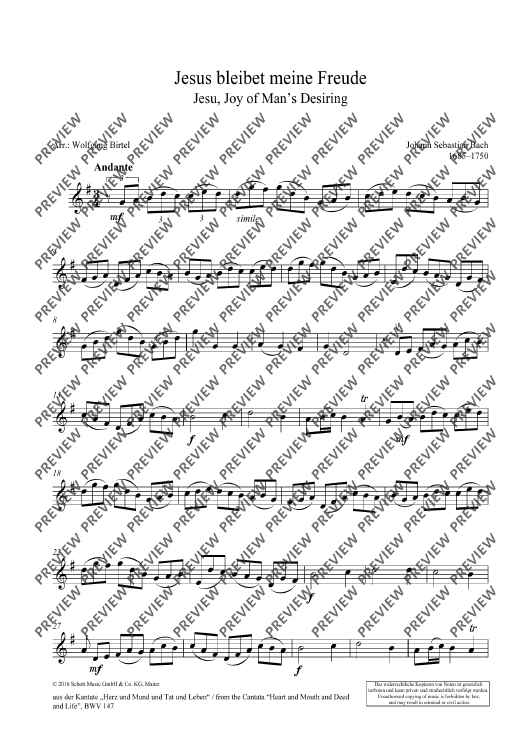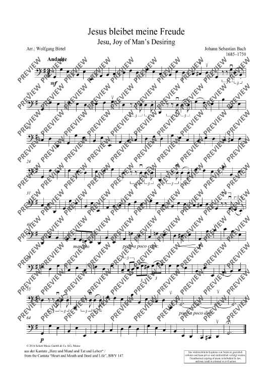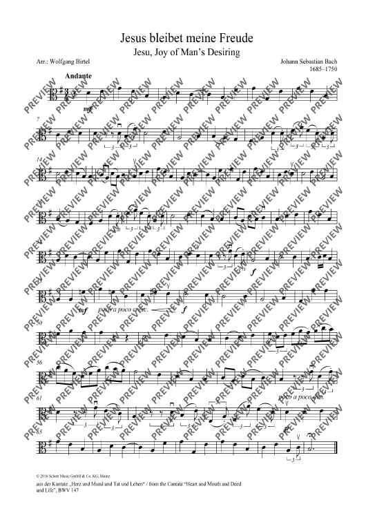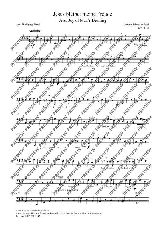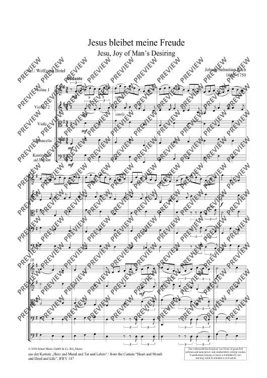 Digital Sheet Music for Jesu, Joy of Man's Desiring by Johann Sebastian Bach, Wolfgang Birtel scored for String Quartet; id:490762