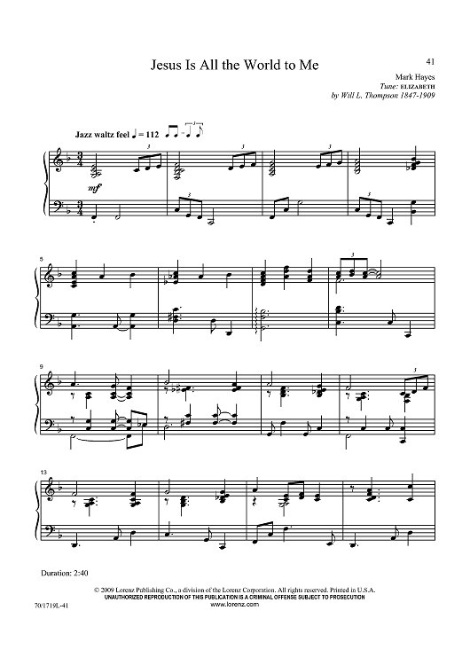 Digital Sheet Music for Jesus Is All the World to Me by Mark Hayes, Will L. Thompson scored for Piano Solo; id:433418