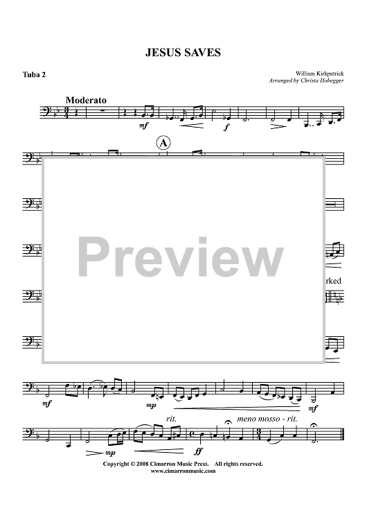 Digital Sheet Music for Jesus Saves - Tuba 2 by William J. Kirkpatrick, Christa Habegger scored for Tuba Quartet; id:417637