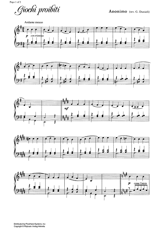 Digital Sheet Music for Jeux Interdit - Forbidden Games by Unknown Writer scored for Piano Solo; id:329055