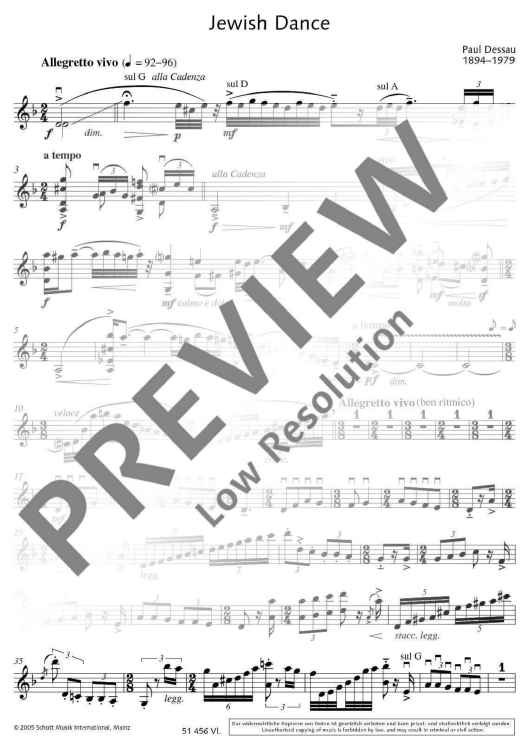 Digital Sheet Music for Jewish Dance by Paul Dessau scored for Violin And Piano; id:476957