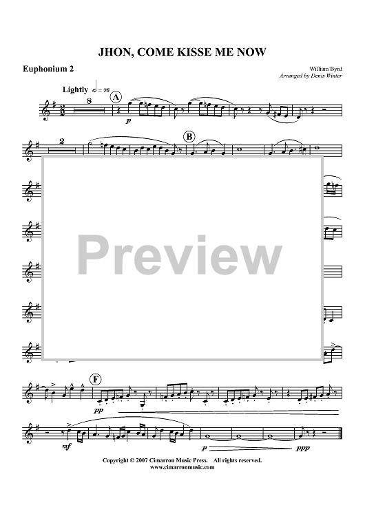 "Jhon, Come Kisse Me Now - Euphonium 2" Sheet Music by William Byrd
