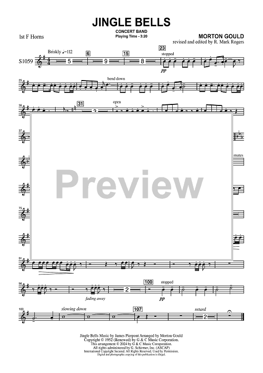 Digital Sheet Music for Jingle Bells for Concert Band - 1st F Horns by Morton Gould, James Pierpont scored for Concert Band; id:506427