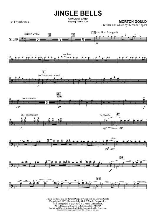 Digital Sheet Music for Jingle Bells for Concert Band - 1st Trombones by Morton Gould, James Pierpont scored for Concert Band; id:506431
