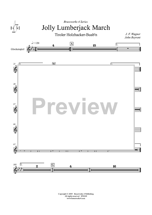 Digital Sheet Music for Jolly Lumberjack March - Glockenspiel by J. F. Wagner, John Beyrent scored for Brass Ensemble; id:411275